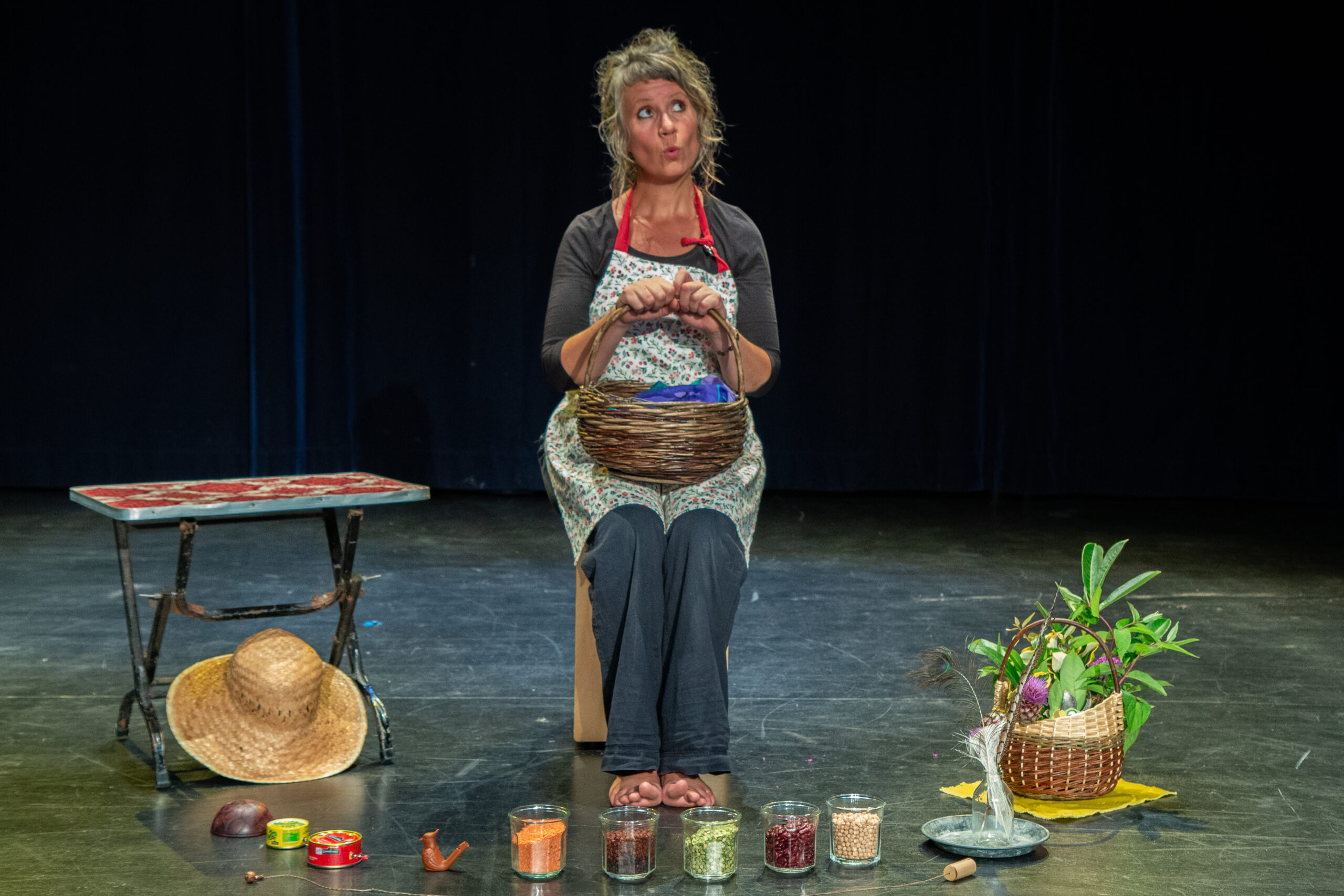 Conte drôle et poétique qui chante le cycle d’un jardin et pose la question du vivre ensemble. Jeux de mains (L.S.F.), de plumes, d’appeaux et mandala de graines et fleurs.