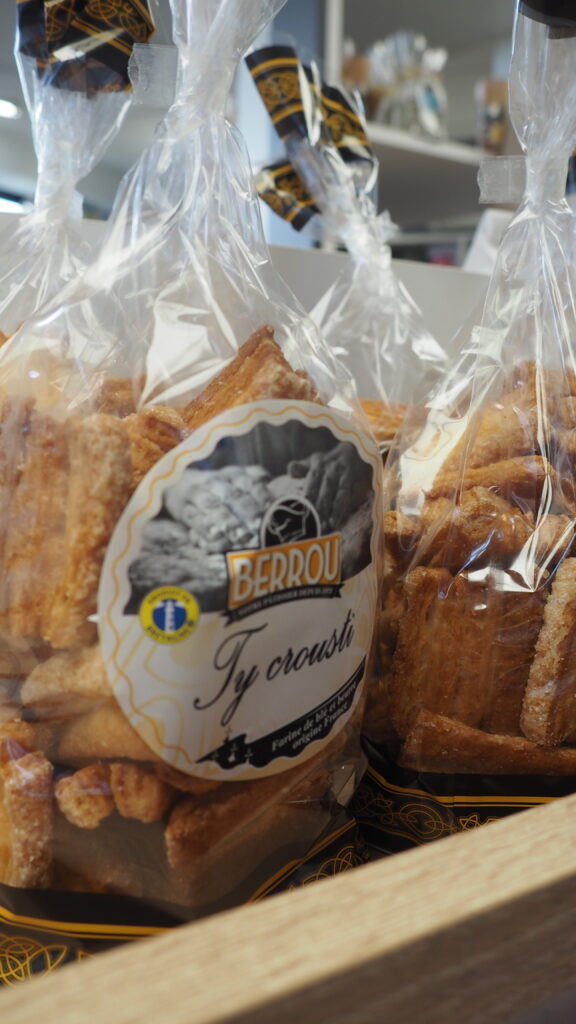 Direction Goulven pour visiter l’atelier de production des kouing amann, gâteaux bretons, les Ty Crousti ou autres lichouseries locales ! Fabriquant de spécialités bretonnes depuis 1975, on y perpétue le savoir faire breton de génération en génération depuis bientôt un demi-siècle. Nous avons pu y observer une partie de la fabrication des Ty Crousti, ces petites gourmandises de pâte à kouing amann façon « palmiers ». C’était très intéressant de voir les coulisses de cette pâtisserie artisanale locale, qui travaille avec beaucoup d’acteurs du territoire pour distribuer leurs délicieux produits.